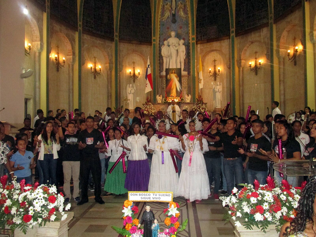 Panamá, Febrero 2016.- El Movimiento Juvenil Salesiano cerró con una participacion dentro de la misa, con el canto Un corazón tan grande. Después se alegró el ambiente, con una Murga o banda, por las calles de los alrededores.