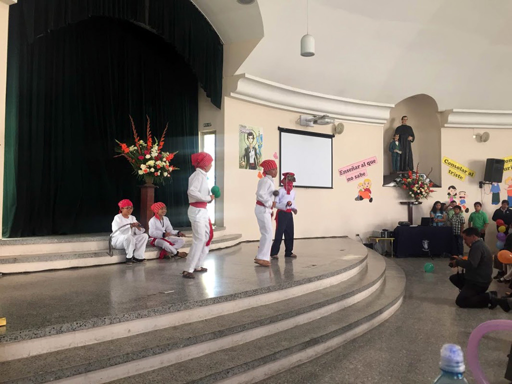 Quetzaltenango, Guatemala, agosto 2016.- Presentación "el baile del venado" por estudiantes de 4° grado en la elección de niña Liceo Guatemala.