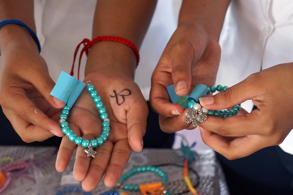 Granada, Nicaragua, agosto 2017.- Un talento escondido pero ahora desarrollado estuvo expresado en las diversas prendas elaboradas por jóvenes estudiantes de séptimo y octavo grado durante la clase de Emprendedurismo. Pulseras, aretes, cintillos y llaveros de diversos colores fueron parte de la exposición. Con la mentalidad de proyecto, los estudiantes del Colegio Salesiano adquieren herramientas que en el futuro serán de gran utilidad en su desarrollo personal y profesional.