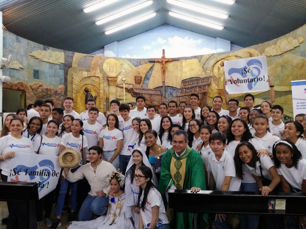Panamá, julio 2018 - Los jóvenes de la Parroquia San Francisco de La Caleta y del Templo María Auxiliadora de ITDB, motivaron a los feligreses a participar en la JMJ Panamá 2019, durante la celebración eucarística presidida por el P. Alex Figueroa Ruíz, director del Instituto.