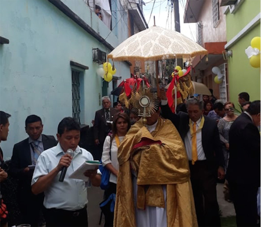 Guatemala, Agosto 2018.- El día domingo 29 de julio, la Asociación del Santísimo Sacramento llevó a cabo la procesión de Jesús sacramentado por las calles y avenidas de las Colonia Valdez la actividad dio inicio a las 9:30 con la santa misa presidida por el P. Gerardo Hernández, sdb, principal responsable de esta casa, cuya parroquia ha sido confiada a la comunidad salesiana, "La Divina Providencia", luego se procedió a realizar la procesión qué concluyó a las 14:30 horas, participaron la asociación del Santísimo, grupo de oración de la renovación carismática católica local, la asociación de Jesús Nazareno y el grupo de acólitos Domingo Savio.