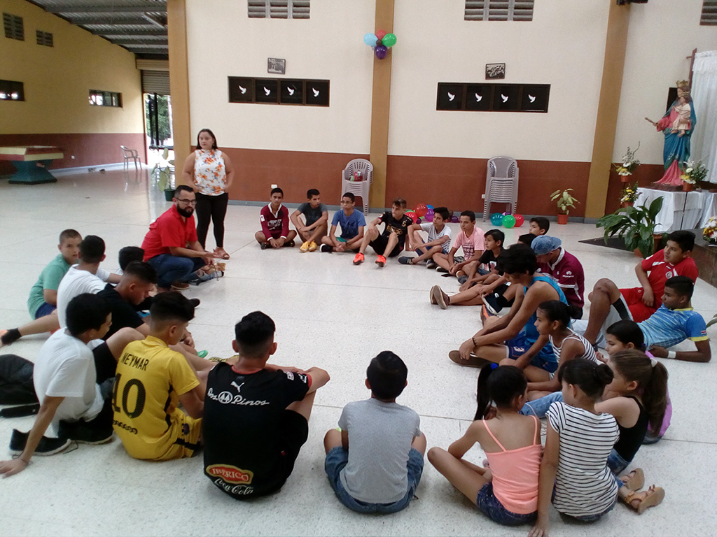 San Isidro de El General, Costa Rica, Agosto 2018.- El sábado 18, se celebró la fiesta del nacimiento de Don Bosco en el oratorio Domingo Savio, el cual, sábado tras sábado, un grupo considerable de niños y jóvenes asisten al oratorio festivo. En esta ocasión, los Salesianos Cooperadores presentes en San Isidro de El General, con ayuda de jóvenes de los grupos juveniles de la Obra, desarrollaron una serie de actividades lúdicas para festejar a Don Bosco. Iniciando a las dos de la tarde con la oración y las buenas tardes, los salesianos Cooperadores continuaron con la charla formativa sobre importancia de Don Bosco en la vida de todo joven, ya que en su Escuela se forman líderes que experimentan un encuentro con Cristo y fruto de ello es que logran vivir como buenos cristianos y honrados ciudadanos. Luego, momentos de juegos feriales y actividades recreativas. La típica “Mejenga” no se hizo esperar, y pese a la lluvia, los jóvenes vivieron un momento lleno de alegría dejando todo en la cancha. Finalmente se compartió una comida realizada por los mismos Salesianos Cooperadores.