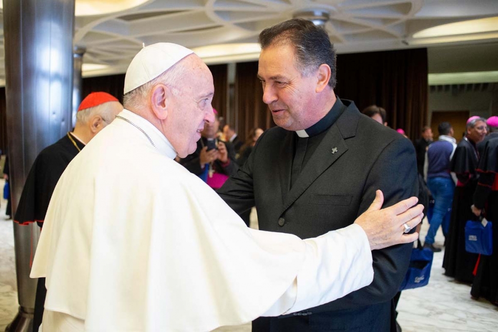 Ciudad del Vaticano, Vaticano – octubre 2018 – El 10 de octubre, como parte del Sínodo de los Obispos, el Papa Francisco se encontró brevemente con el P. Don Ángel Fernández Artime, Rector Mayor de los Salesianos de Don Bosco, miembro del Sínodo. El Pontífice le manifestó que rezaba por los salesianos y el Rector Mayor le aseguró, a su vez, que todos los salesianos confían continuamente sus intenciones a María Auxiliadora.