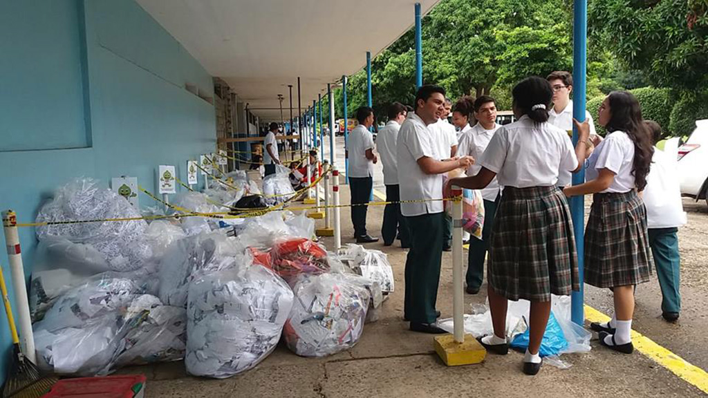 Panamá, noviembre 2018.- Del 22 al 26 de octubre se celebró por primera vez el EcoWeek en el Instituto Técnico Don Bosco. El objetivo era fomentar la cultura de reciclaje y cuidado del medio ambiente entre la familia ITDB y amigos. Las Fundaciones Sus Buenos Vecinos y Eco Creando, en conjunto con la empresa Recimetal apoyaron la actividad que consistía en recolección de papel, plástico, revistas, cartón, electrónicos reciclaje por equipos de estudiantes. Durante la semana, contabilizando el material reciclado, se pudo salvar el equivalente a 47 árboles y ahorrar 9383 litros de agua. La preservación del medio ambiente se ha convertido en un proyecto importante en el colegio y ya ha sido reconocido como uno de los cinco centros de acopio en la ciudad de Panamá y el único instituto del país con un plan ecológico en funcionamiento.