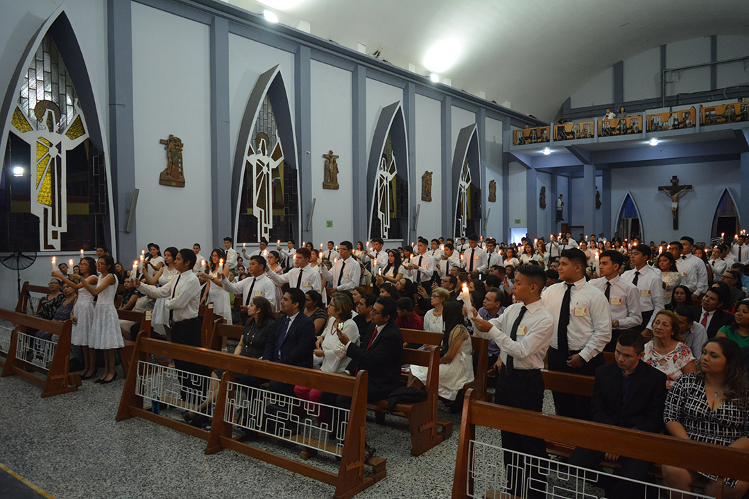 Tras seis meses de preparación 61 estudiantes del colegio junto 28 señoritas de grupos juveniles y estudiantes de la Escuela María Mazzarello recibieron al Espíritu Santo y confirmaron su fe.
