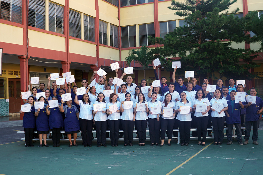 Santa Tecla, noviembre 2019. Los docentes y personal administrativo del Colegio Salesiano Santa Cecilia, finalizaron la primera capacitación en procesos de gestión de calidad en el servicio y funcionabilidad como institución educativa.