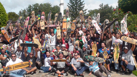 El Salvador, San Salvador, junio 2010.- Cientos de jóvenes participaron de la celebracion del día internacional del skateaboarding. El propio día es el 21 de junio pero en El Salvador se celebró el día 20 con un desfile de jóvenes en sus patinetas. El grupo de deportes extremos de FUSALMO participó en la celebración.