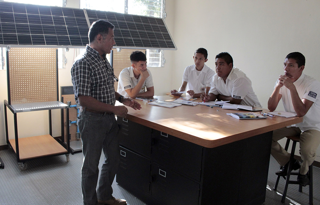 Santa Ana, El Salvador, marzo 2020.- Los cursos del Centro de Formación Profesional San José actualmente benefician un promedio de 220 jóvenes al mes. 19 de ellos forman parte del curso de Instalación y Mantenimiento de Paneles Solares. Los jóvenes al terminar su formación pueden complementar sus conocimientos con otros cursos gratuitos de electricidad que se ofrecen en el CFP.