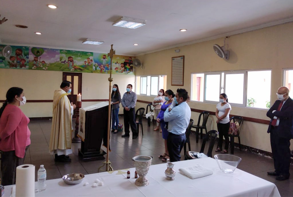 Guatemala, Guatemala, agosto del 2020. La parroquia, "La Divina Providencia", siguiendo las indicaciones del Gobierno y la Conferencia Episcopal guatemalteca, se llevaron a cabo los primeros Bautizos de niños en época de pandemia. La celebración del sacramento se realizó de manera solemne observando los respectivos protocolos de salud.
