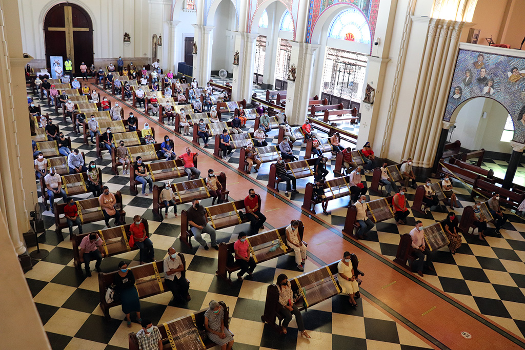 Panamá, Panamá, octubre 2020.- La mañana del domingo 25 de octubre, las puertas del templo de la Basílica Menor Don Bosco reabrieron para permitir a los fieles su participación en las eucaristías dominicales, luego de 7 meses de confinamiento a causa de la pandemia COVID 19.