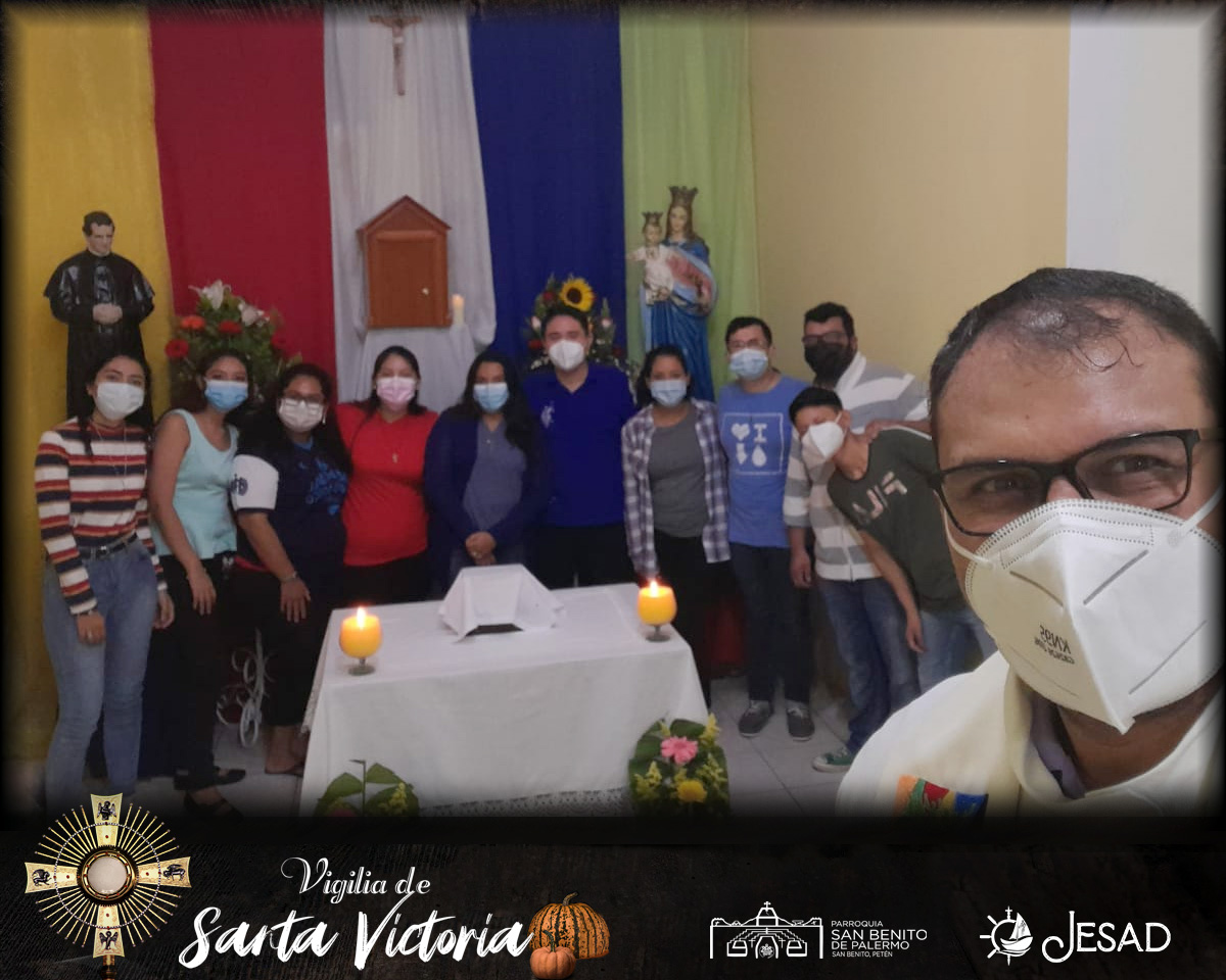 San Benito, Petén, Guatemala. Después de 7 meses de confinamiento, los jóvenes del grupo juvenil JESAD la noche del 31 de octubre pudieron compartir de manera presencial y celebraron la Vigilia de Santa Victoria (Holy Win). Meditaron junto al Padre Luis Acevedo Villagrán sdb, sobre la importancia de no celebrar Halloween; el porqué Dios nos invita a la Santidad como un don, mandato y tarea. La jornada culminó con un momento de adoración a Jesús Sacramentado.