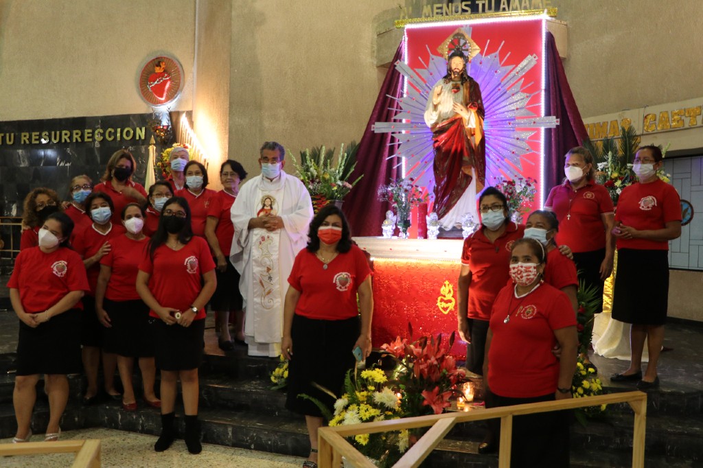 Soyapango, El Salvador, junio 2021.- La Parroquia San Juan Bosco de Ciudadela, preparó con gran esmero la fiesta del Sagrado Corazón de Jesús. Los feligreses que forman parte del grupo Sagrado Corazón de Jesús, iniciaron con el rezo de la coronilla y la celebración continuó con la santa eucaristía. Al finalizar los actos litúrgicos el festín concluyó con la distribución de un refrigerio a los participantes. En esta parroquia salesiana se mantiene con gran fervor la devoción al Corazón de Jesús como Don Bosco lo aconsejó a la congregación.