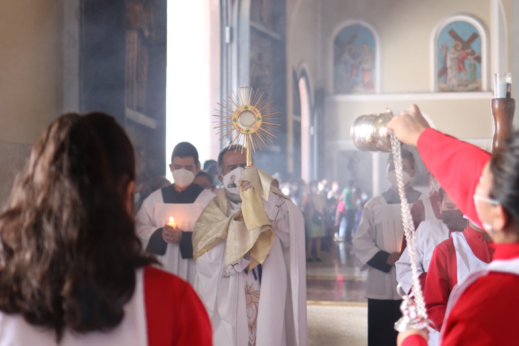 Además, presidió la Eucaristía solemne de Corpus Christi a las 10:00 a.m. y la pequeña procesión con Jesús Sacramentado que este año se realizó solamente dentro del templo, pero con el mismo fervor de todos los fieles presentes.