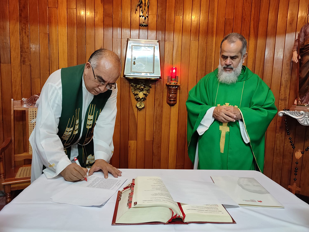 Granada, Nicaragua, septiembre 2021- En el contexto de la visita inspectorial, durante la celebración de la Santa Eucaristía en la Capilla de la Comunidad Salesiana, el P. José Anael Pascual tomó posesión oficialmente como director de la Obra Salesiana en Granada, Nicaragua ante la presencia del P. Ángel Prado, superior de los SDB en Centroamérica.