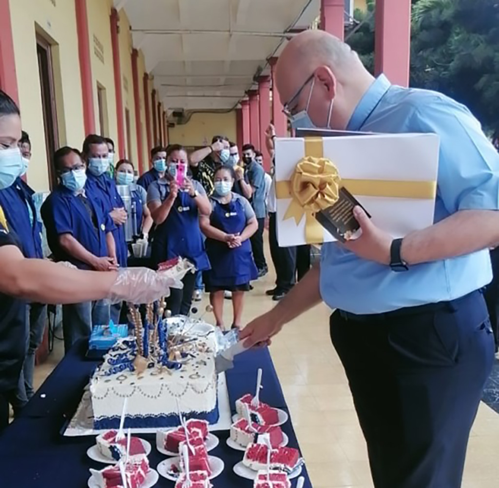 Santa Tecla, El Salvador, octubre 2021. El pasado 19 de octubre se festejó el día de la Gratitud por el natalicio del padre director del Colegio Salesiano Santa Cecilia, padre Rodolfo Guzmán, sdb con una eucaristía en la que participó de forma presencial estudiantes de la promoción 2021 y colaboradores del colegio. El resto del estudiantado tuvo intervención virtual a través de la trasmisión en vivo.