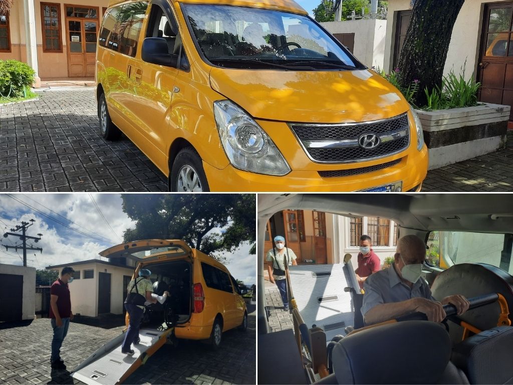 San Salvador, El Salvador, noviembre 2021. - La casa de salud de la Parroquia María Auxiliadora, Don Rúa, recibió en donación, por parte de la Inspectoría, un vehículo modificado con plataforma para silla de ruedas, con el fin de poder movilizar fácilmente a los salesianos mayores de la casa.