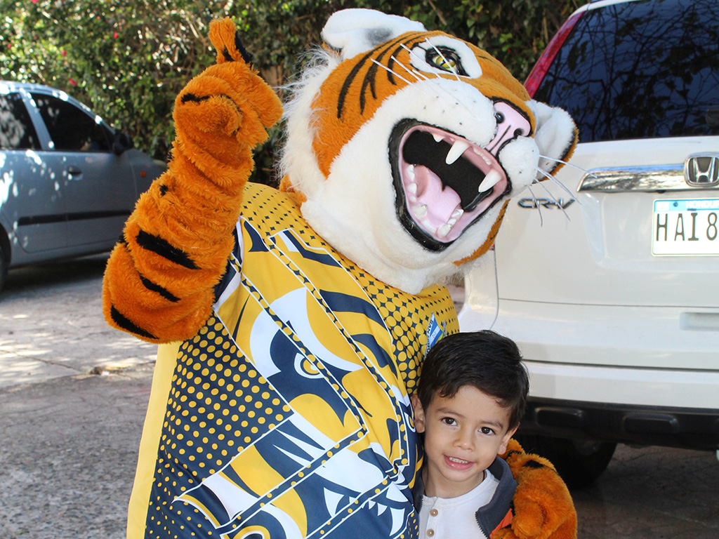 Tegucigalpa, Honduras, febrero 2022. - El San Miguel sorprendió a los más pequeños del colegio con una visita de la maestra guía junto a la mascota del Instituto: Benji.