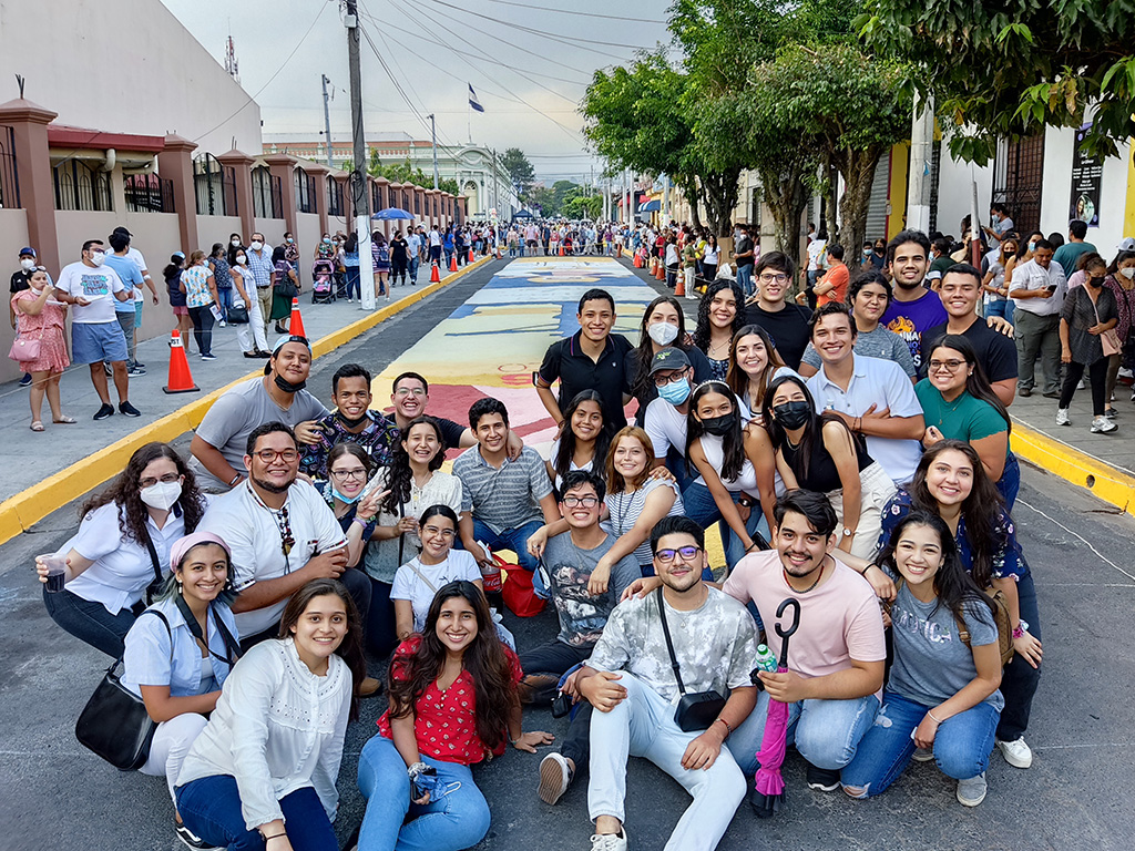 Santa Tecla, El Salvador, abril, 2022. - Jóvenes del programa Encuentro Juvenil en el Espíritu EJE del Santa Cecilia realizaron su tradicional alfombra para la procesión del santo entierro en viernes santo.