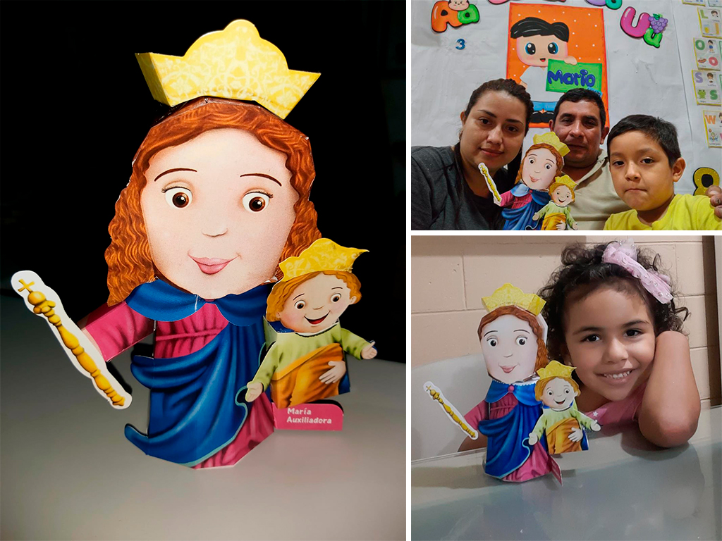 Santa Tecla, El Salvador, mayo 2022. - En la víspera del día la virgen María Auxiliadora, los estudiantes de Parvularia, Primaria y Tercer Ciclo del Colegio Salesiano Santa Cecilia recibieron un papercraft con la imagen de la virgen salesiana.