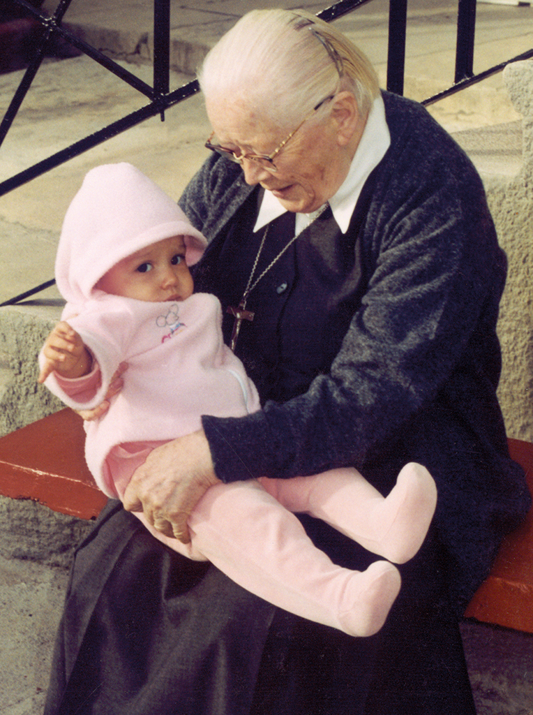 En 1985 empezó la “Obra sabatina” que consistía en la distribución de víveres a los más necesitados, y hasta el año 2000 acompañó personalmente toda la organización. Luego aceptó con serenidad la disminución de sus fuerzas y se dejó atender, edificando con ello a las novicias, que frecuentaban su casa.